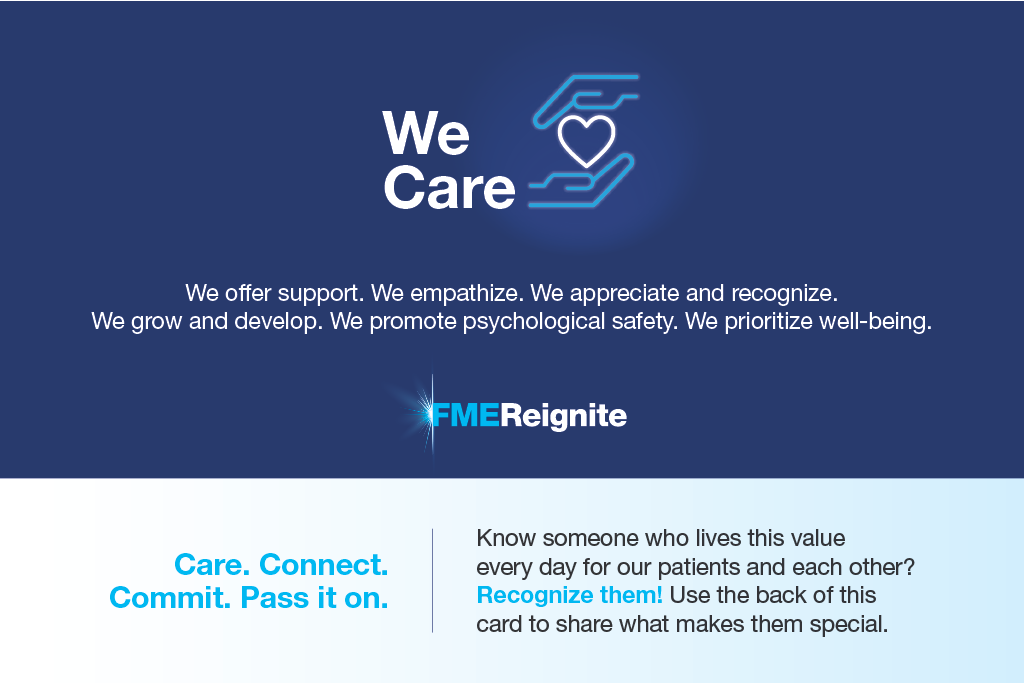 It’s simple: Fill out a We Care, We Connect, or We Commit postcard describing how your colleague demonstrates that core value. Your manager will collect the cards and recipients will receive them during center huddles.